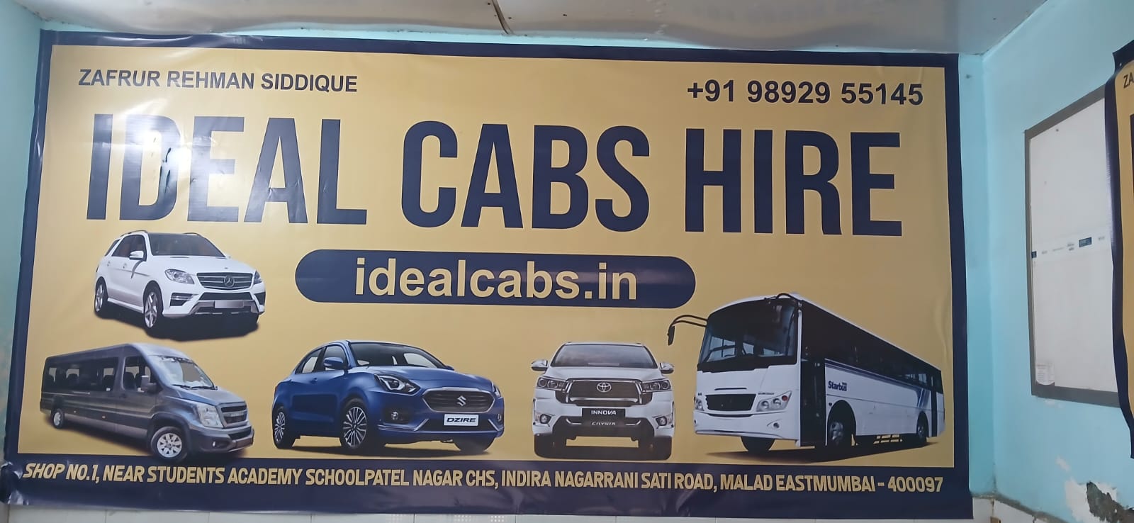 Zafrurrahman, or simply Zafar, can be reached at +91 9892955145 / 9820836796 over phone and WhatsApp. He is based in Mumbai and runs his cabs’ business from Indira Nagar region in Malad East.